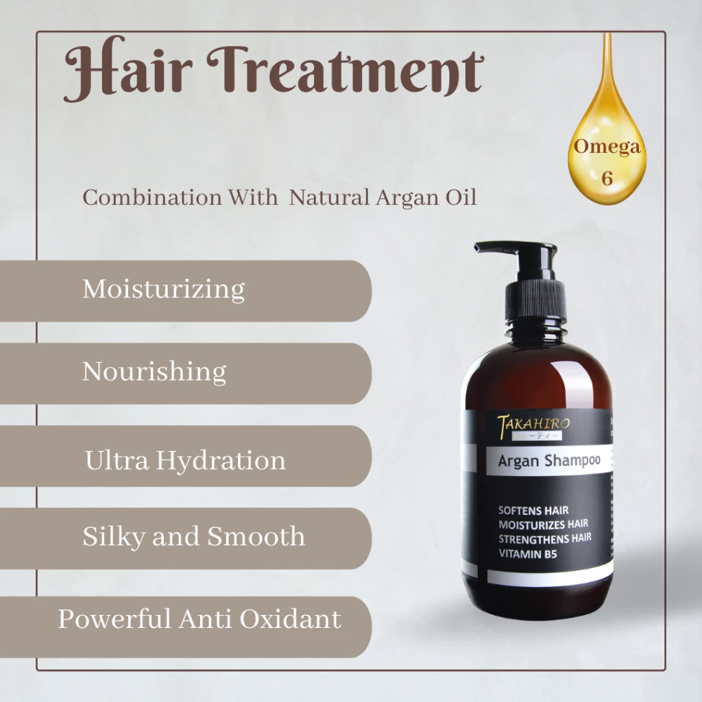 Argan ShampooRepairs and smooths dry, frizzy hair with organic argan oil.Sulfate-free formula that restores softness and shine, gentle for daily use.
